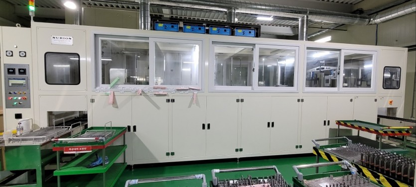 9조 방식의 자동 초음파 세척기(세척 -> 린스 -> AIR CUT -> 진공건조)